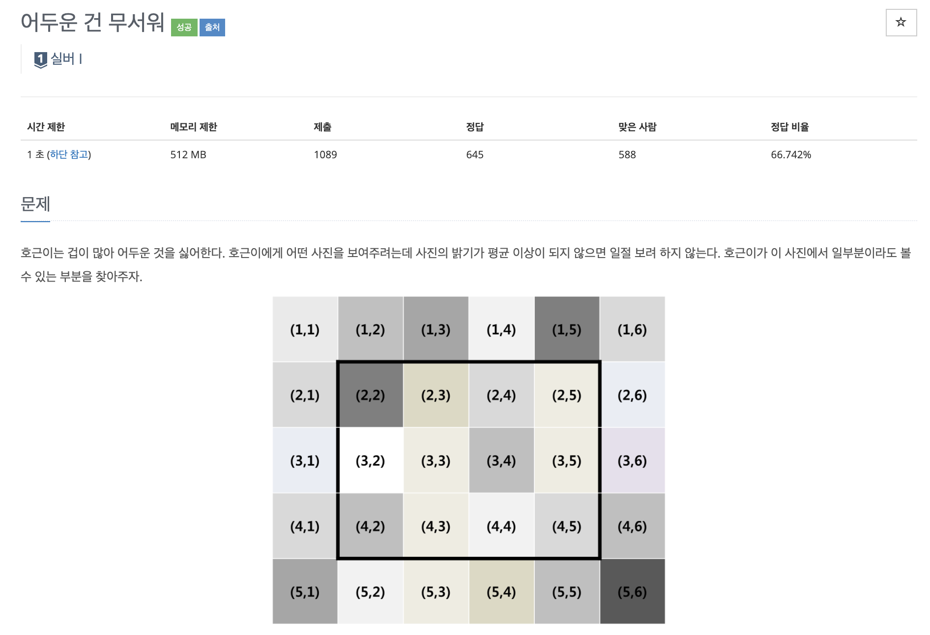 psum [i][j] : 오른쪽 아래 꼭짓점이 (i, j)에 있을 때 내부에 있는 밝기의 합이라고 할 때,