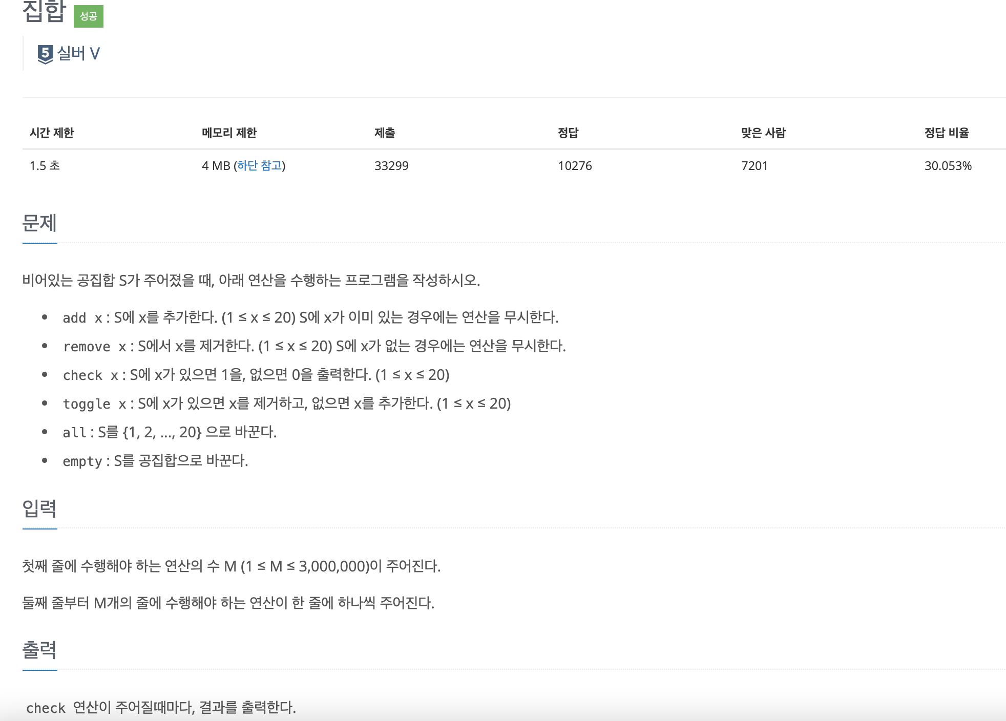 집합을 아래와 같이 비트로 표현 할 수 있다.