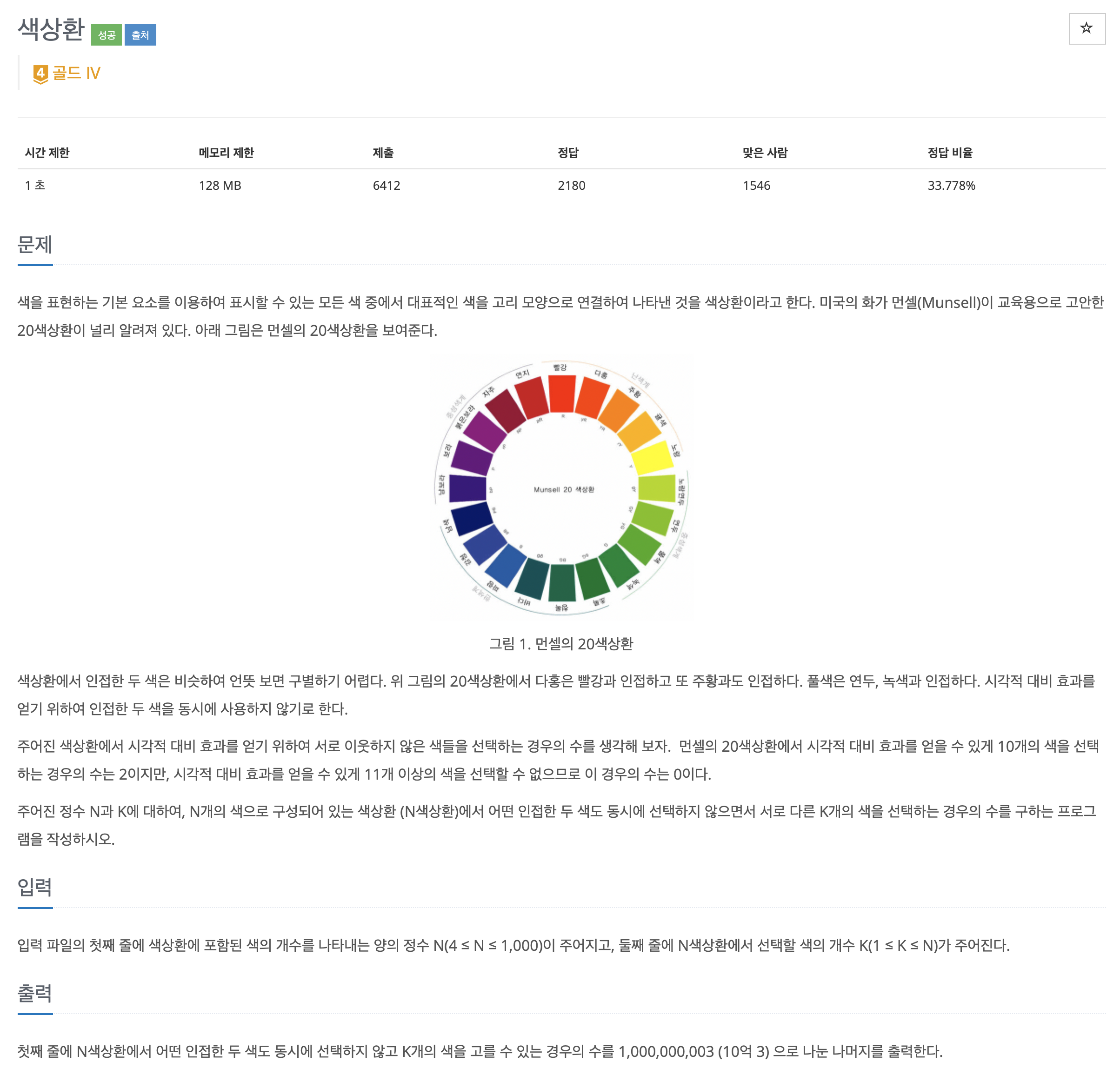 dp[N][K] = dp[N-2][K-1] + dp[N-1][K] (N: 현재 보고 있는 색, K: 현재까지 선택한 수)로 구할 수 있다.
