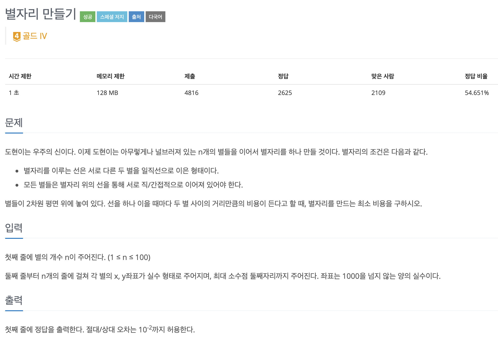 최소 신장 트리(MST)를 구하는 문제이다. MST는 prim 알고리즘과 kruskal 알고리즘을 통해 구할 수 있다.