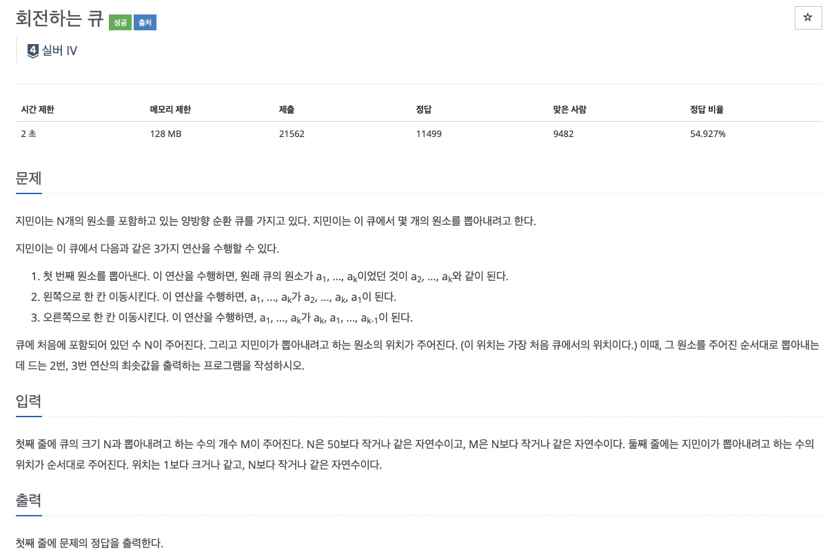 첫째 줄에 큐의 크기 N과 뽑아내려고 하는 수의 개수 M이 주어진다. N은 50보다 작거나 같은 자연수이고, M은 N보다 작거나 같은 자연수이다. 둘째 줄에는 지민이가 뽑아내려고 하는 수의 위치가